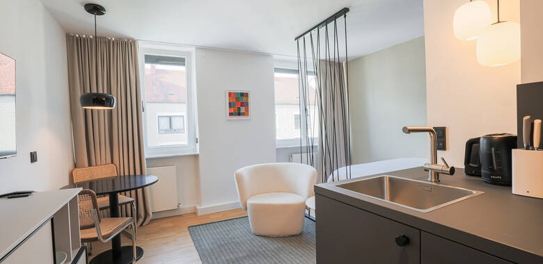 * Die genannten Preise sind Minimumpreise und gelten pro Nacht pro Apartment bei Einzel- und Doppelbelegung, inklusive der gesetzlichen Mehrwertsteuer und des Rundfunkbeitrags. Zu Messen, Feiertagen und in der Hochsaison können die Preise variieren.